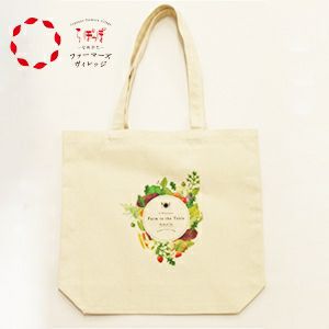 ファームトゥーザテーブルのロゴマークをプリントしたエコバッグ。