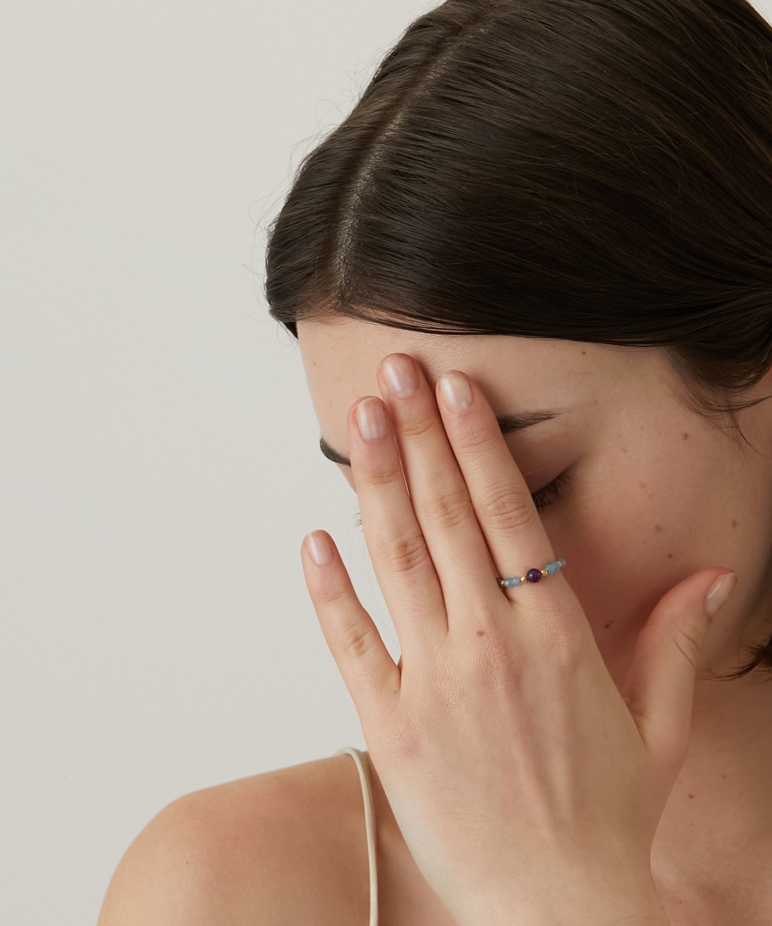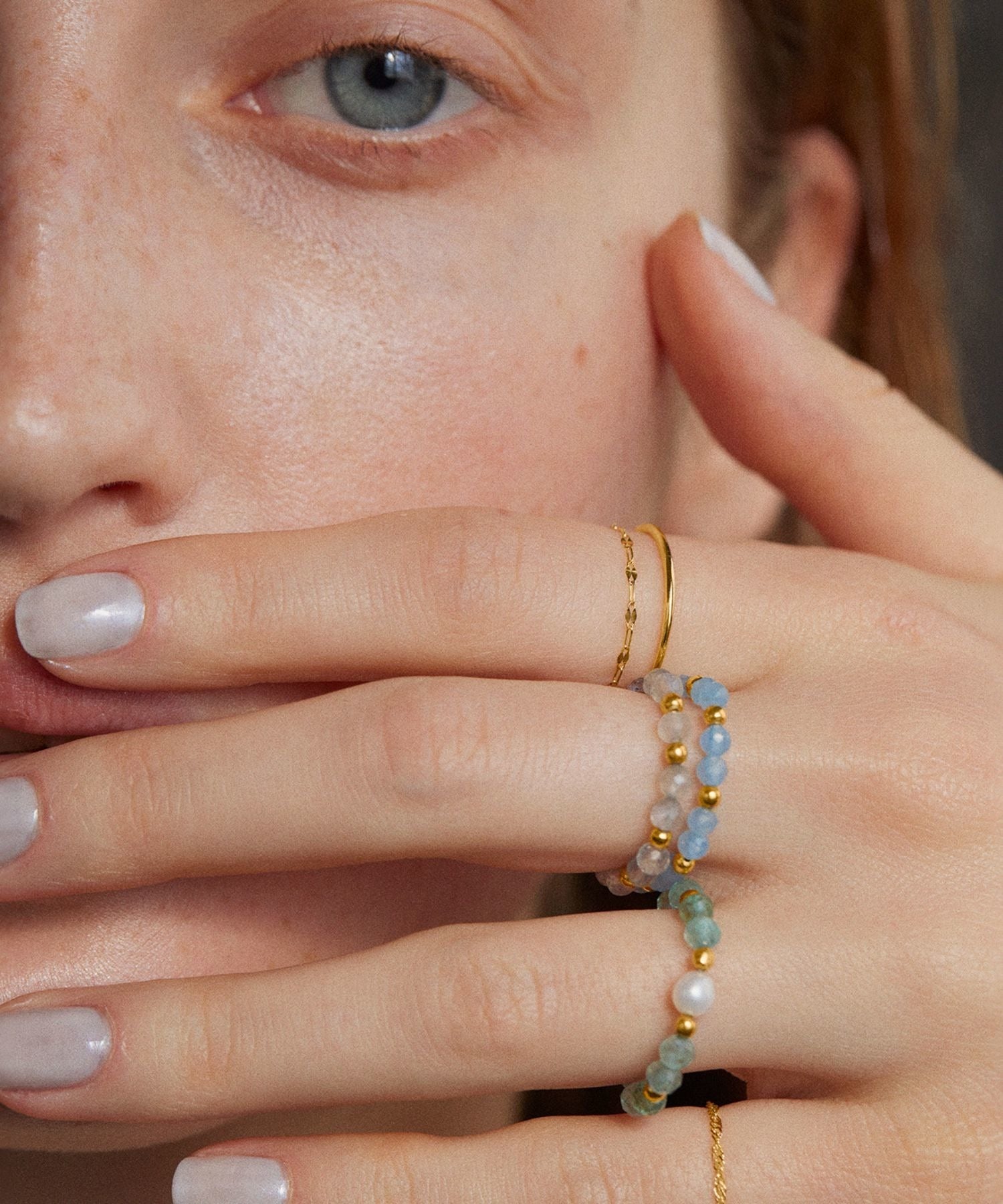 収縮性と強度のあるゴムで繋いだフリーサイズのこのリングは、1つでさりげないお守りとしても、他のamuletteのリングと重ねづけもお勧めです。