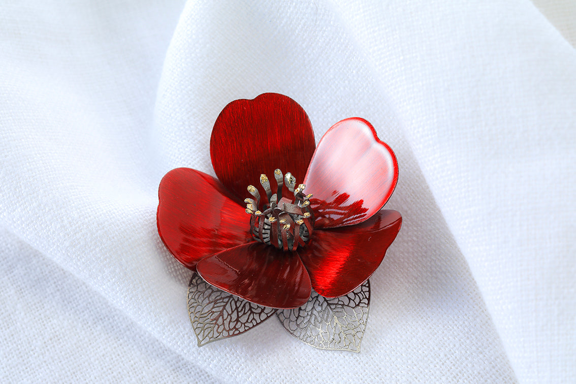 オリジナルブローチ『藪椿 YABU TSUBAKI』Red / White/Red