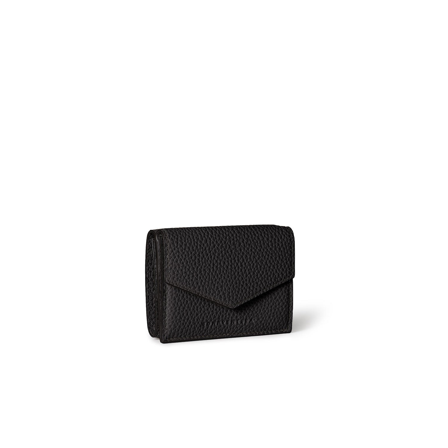必要最低限の収納を可能にした機能的で計算されたデザインのコンパクトな三つ折り財布。