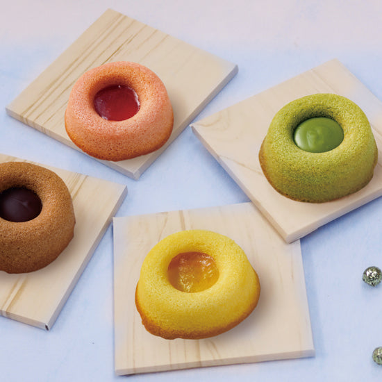 丸く焼き上げたフィナンシェ生地に、ショコラやコンフィチュールをトッピングした愛らしいギフトセットです。