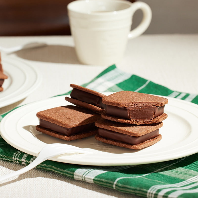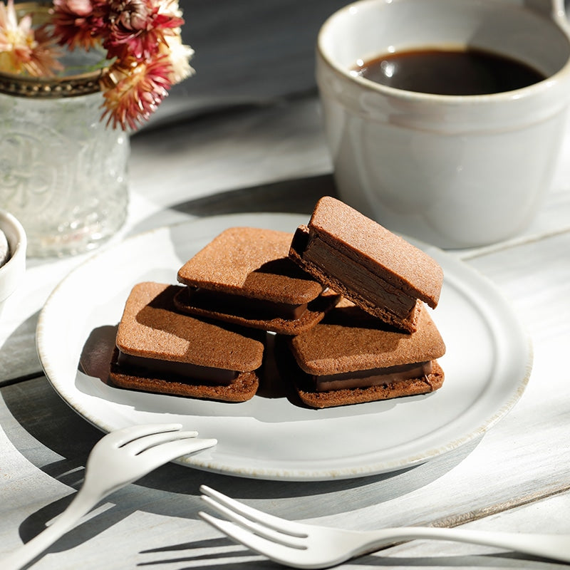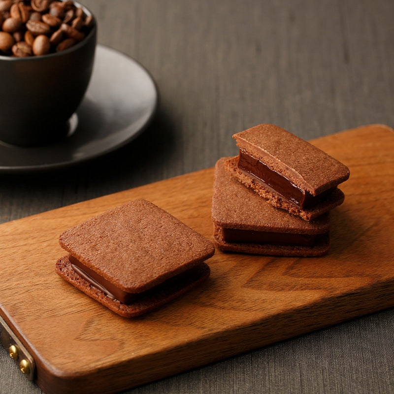 サクッ、パリッ、とろ~り。とろける生チョコレートをこだわりのクーベルチュールで全体をコーティング。サクサクのバタークッキーでサンドした、一度口にしたら虜になる当店のロングセラー商品。 コーヒーとカカオのアロマが混ざり合い、余韻も楽しめる深い味わい。コーヒー好きにはたまらないフレーバーです。