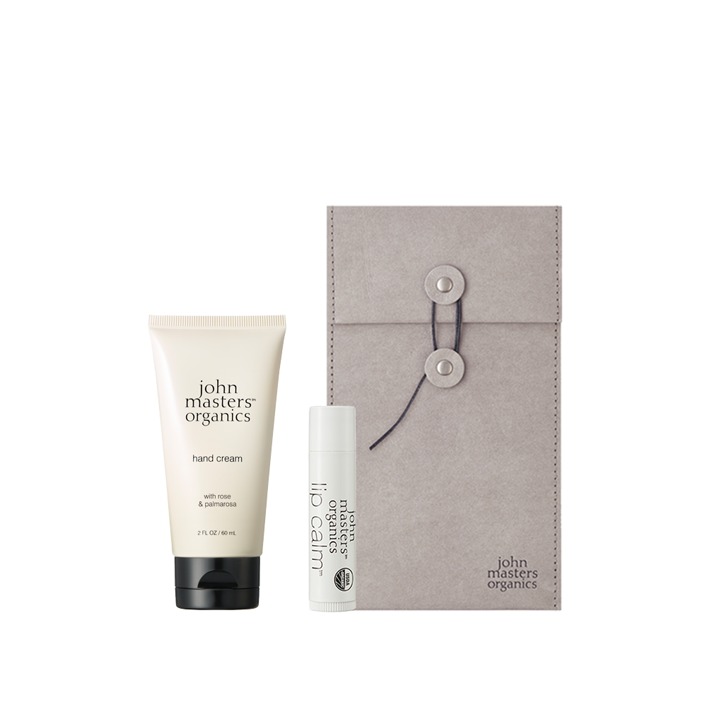 オーガニックの精油をブレンドした高保湿の〈R&Pハンドクリーム〉となめらかなテクスチャーで、乾いた唇にもなじみやすく、1度塗ったら長時間潤いをキープする〈リップカーム〉をセットにしました。ペンケースやコスメケースとしてリユースできるラッピングバッグにお入れしてお届けします。
