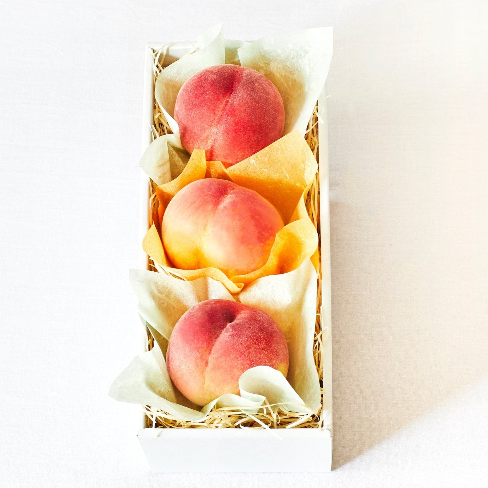 加納岩の桃は「まるかの桃」という通称でそのほとんどが京都の市場で扱われるため、関西以外ではなかなか出会えません。京都にゆかりのある蝶結びだからお届けできる桃です。