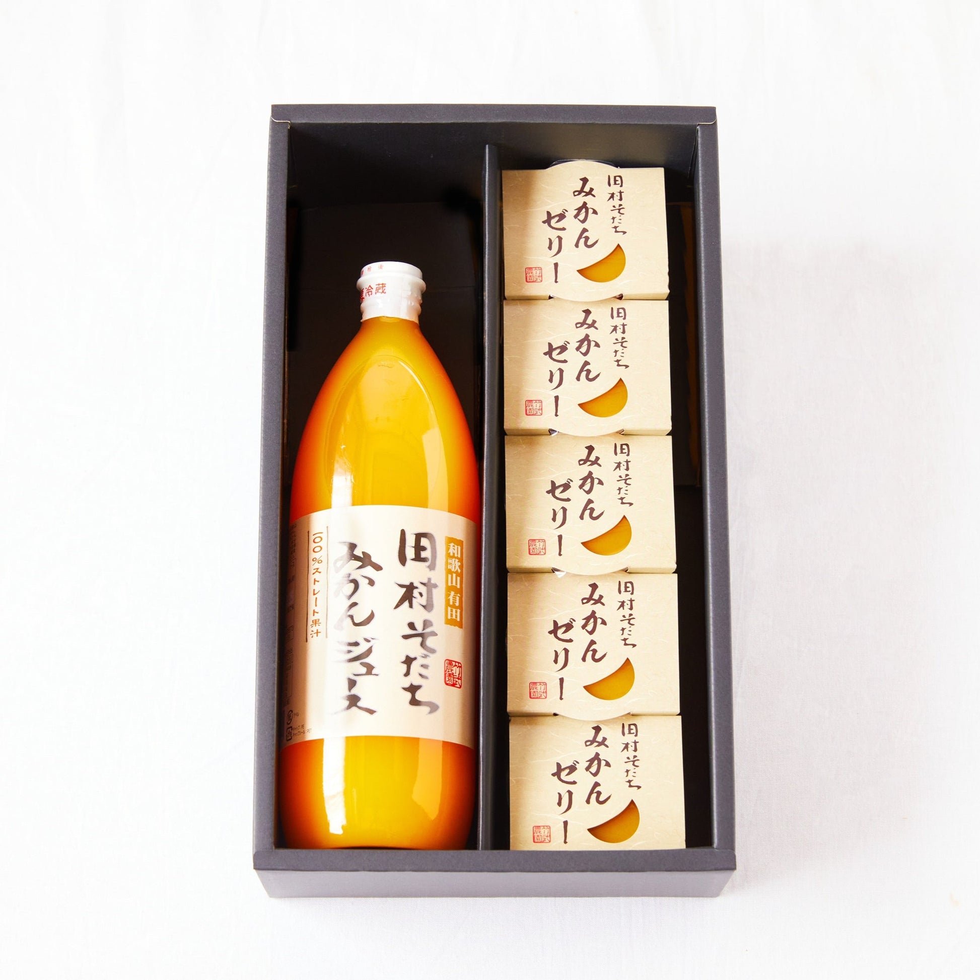 みかんのあじわいをそのままぎゅっと閉じ込めたジュースとゼリーのセット。