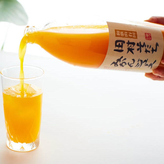 雑味が出ないようていねいに絞ったジュース「田村そだちみかんジュース」は、まるでみかんをそのまま飲んでいるような濃厚なあじわい。酸味が少なくまろやかで飲みやすい、満足感の高いジュースです。