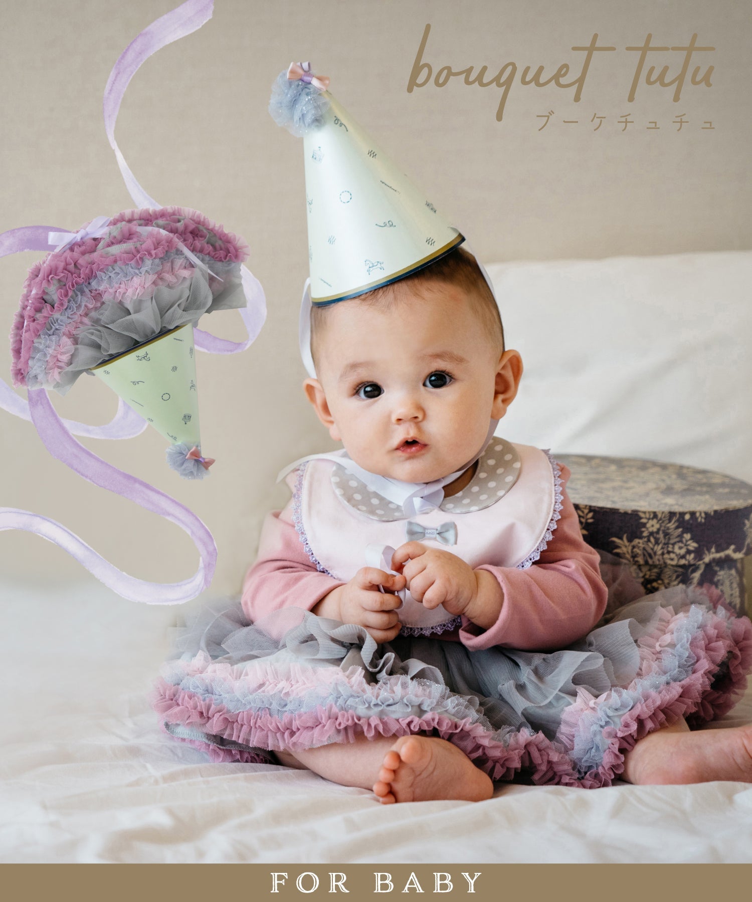 セットのチュチュは、ふわふわフリフリたっぷりの「チュチュプリンセス」。panpantutuのチュチュは柔らかくて、ベビーにもやさしいと人気。