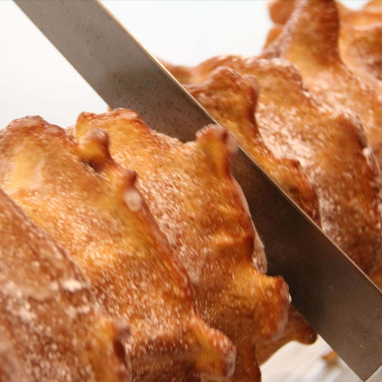 焼き上がったら、有機レモン果汁を加えたグラスアローを手塗りし、粉糖をふりかけます。すっきりとしたやさしい甘さが広がる味わいに仕上げました。
