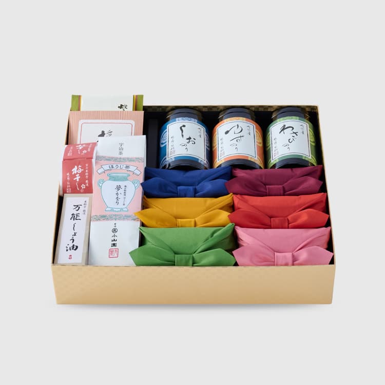 厳選したお米6種と、相性抜群のお供たちが織りなす、京の美食のおもてなし。お祝いの気持ちや感謝の心がたっぷりと詰まった、充実のギフトです。