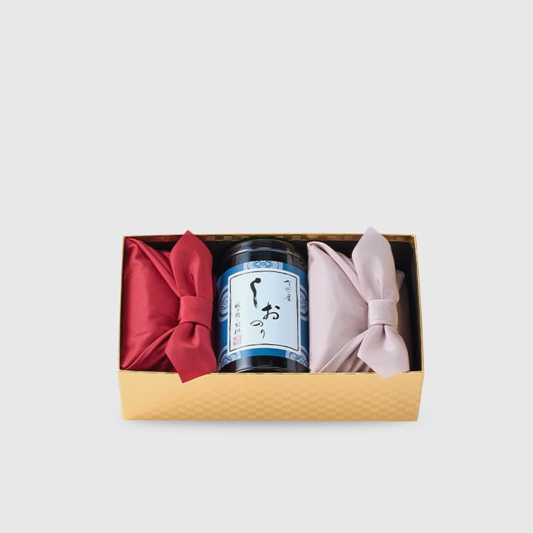 八代目儀兵衛の最高傑作「翁霞」と、甘みと噛む楽しさにこだわった「神楽」。お供には「しおのり」を添えた、贅沢なお米の食べ比べ体験の贈りもの。