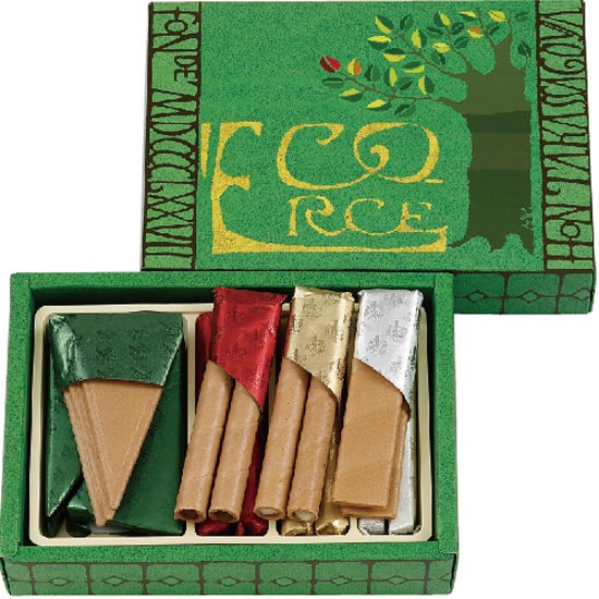 ●内容:三角エコルセ3枚入×4、短冊エコルセ2枚入×6、丸型エコルセ2本入(ミルクチョコ×3、ホワイトチョコ×3) ●箱サイズ:30x14x4cm ●アレルゲン:麦・卵・乳 ●賞味期限:製造日より常温180日