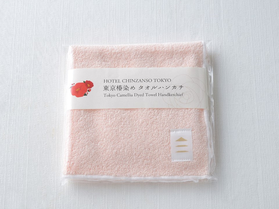 145年の歴史あるホテル椿山荘東京庭園を彩る椿の花びらから抽出した染液で、今治産の上質なタオルを染め上げたタオルハンカチです。