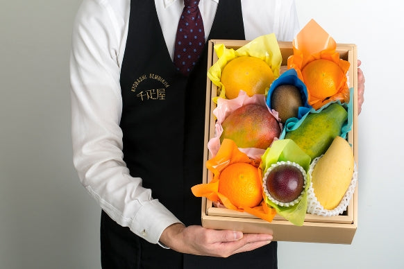 京橋千疋屋の目利きが、日々出来が変化する果物の中からコンディションの良い旬のものを、選りすぐってお詰めいたします。箱を開けた瞬間から季節感をお楽しみいただける詰め合わせ。特別感を味わえる果物をお届けできるのは、果物一つ一つの特性を熟知した職人がいる千疋屋だからこそ。当店の目利きに、お任せ下さいませ。
