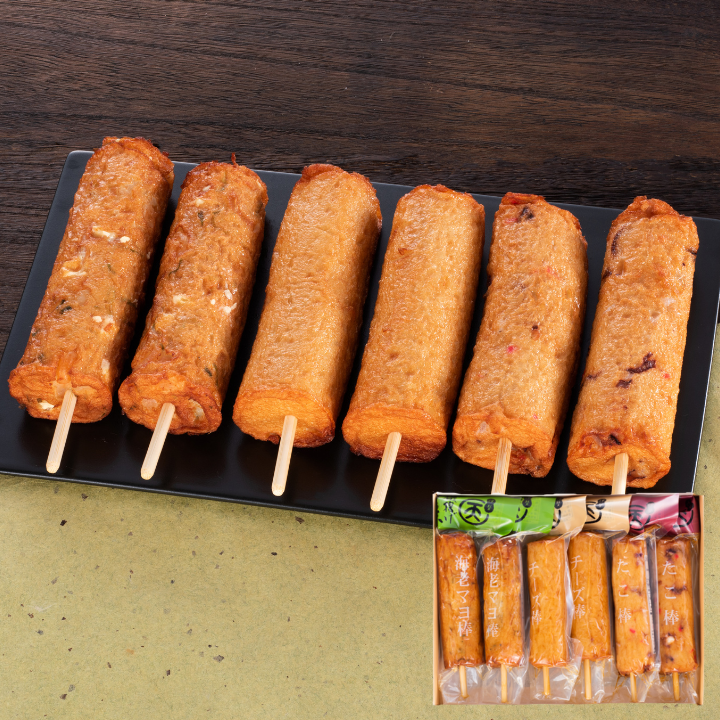 磯揚げまる天の大人気看板商品を食べ比べ♪実店舗でも大人気のたこ棒・チーズ棒・海老マヨ棒の3種類が入ったセットです。