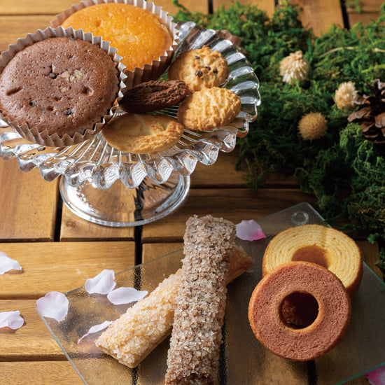 日常の癒しの世界「森の庭」で、動物たちが咲き誇る花々に喜び、集めた花をリスに贈る物語をパッケージにデザインしました。 両手で手渡しできるプレゼント感あるギフトボックスの中には、素材にまっすぐに向き合ったお菓子をバラエティ豊かに詰め合わせています。