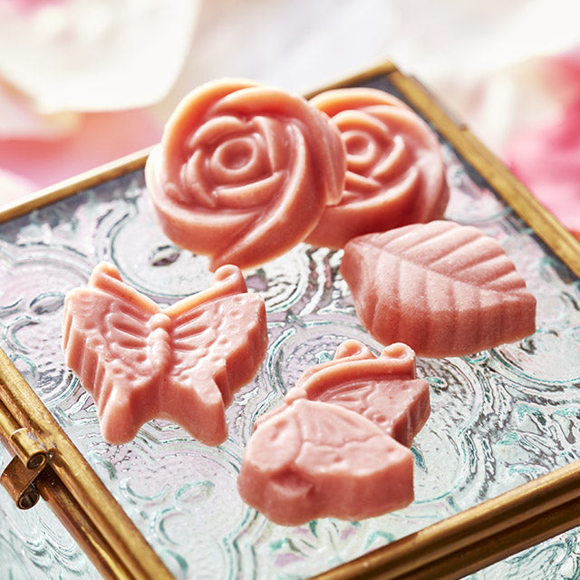 花びら1枚1枚まで繊細に再現した2色のローズケーキ、可憐なローズや蝶をかたどったチョコレート、苺の甘酸っぱいホワイトチョコや、純度100%のピュアチョコレート、特製シロップに漬け込んだもぎたて林檎チョコレート。