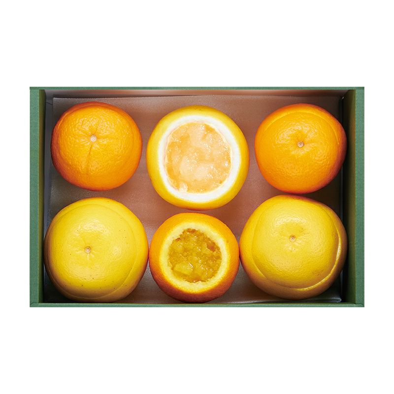 | 内容 | オレンジゼリー、グレープフルーツゼリー 各3個 1個あたりの内容量(可食部) オレンジゼリー 約150g、グレープフルーツゼリー 約240g ※生の果物を加工している商品のため重量は若干前後します。 |