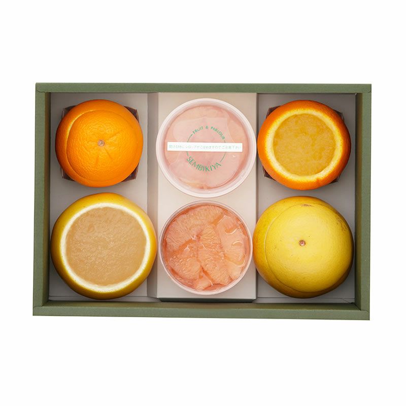 千疋屋のこだわり果実をデザートに変身させた、爽やかな柑橘系デザートセットです。水分がたっぷり含まれたグレープフルーツ、オレンジの果汁を、余すところなく、ゼリーとシロップ漬けに仕上げました。