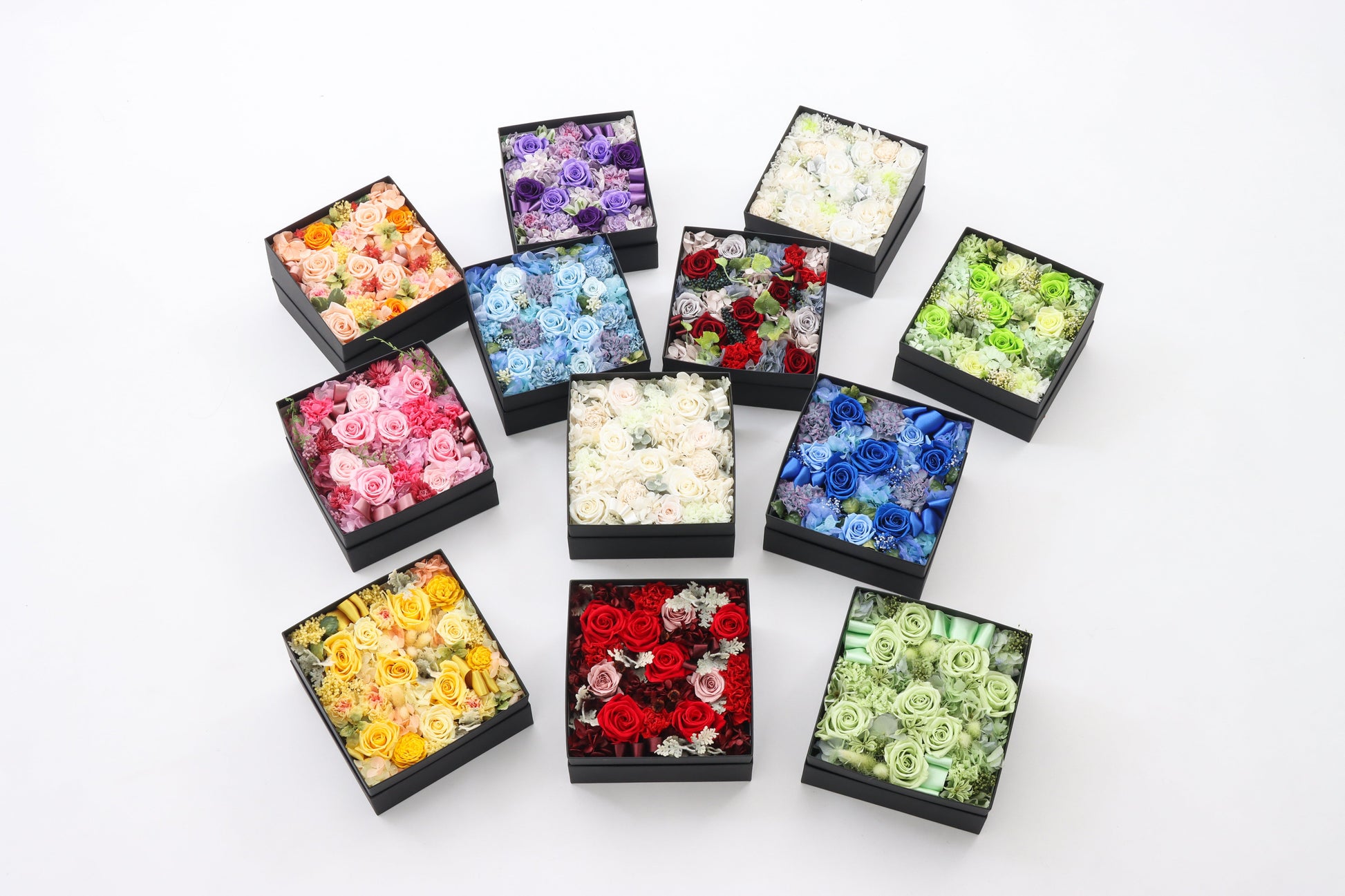誕生石カラーのプリザーブドフラワーボックス/12月ターコイズ・オニキス