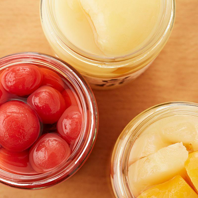果実そのものが上質で美味しいので、果物の自然な風味を引き立てるライトシロップに漬け込みました。