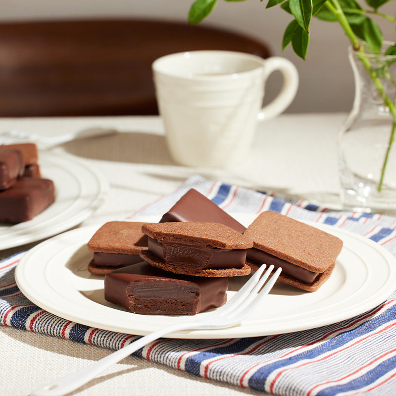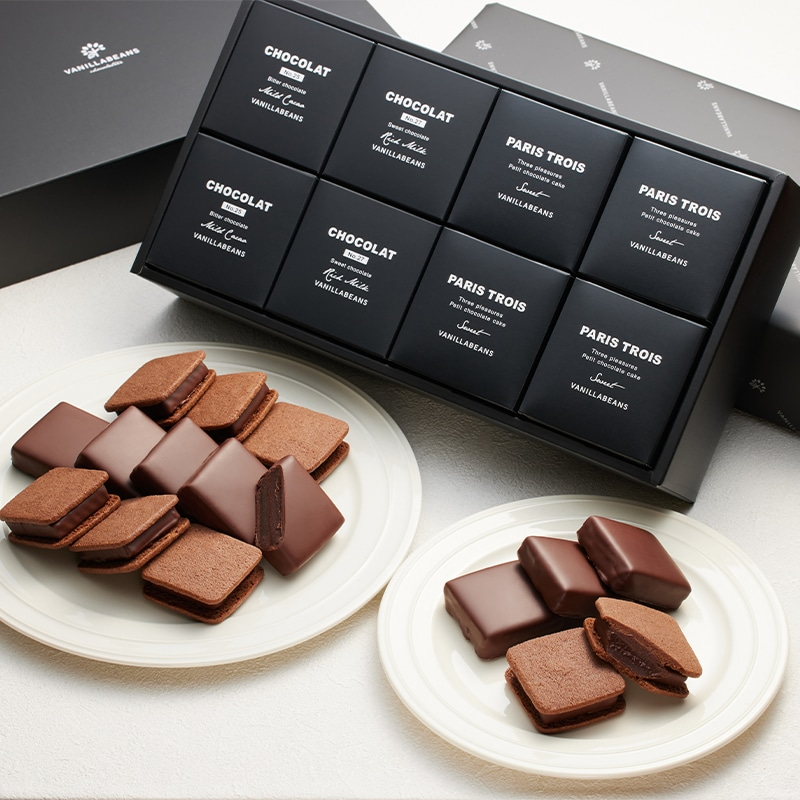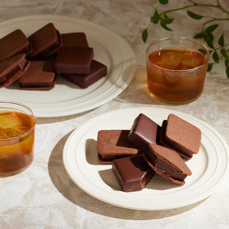 濃厚な生チョコレートをサクサクのバタークッキーでサンドした「ショーコラ」と、3層のチョコレートが織りなす濃厚な味わいの「パリトロ」の2種類が入った、当店一番人気のアソートセットです。16個入は大容量で欲しい時におすすめです。