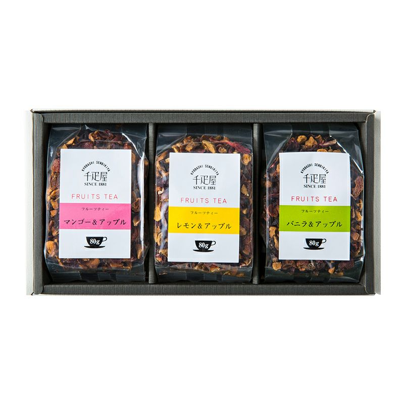 | 内容 | フルーツティー3袋入 3種類・各80g(バニラ&アップル、マンゴー&アップル、レモン&アップル) |
