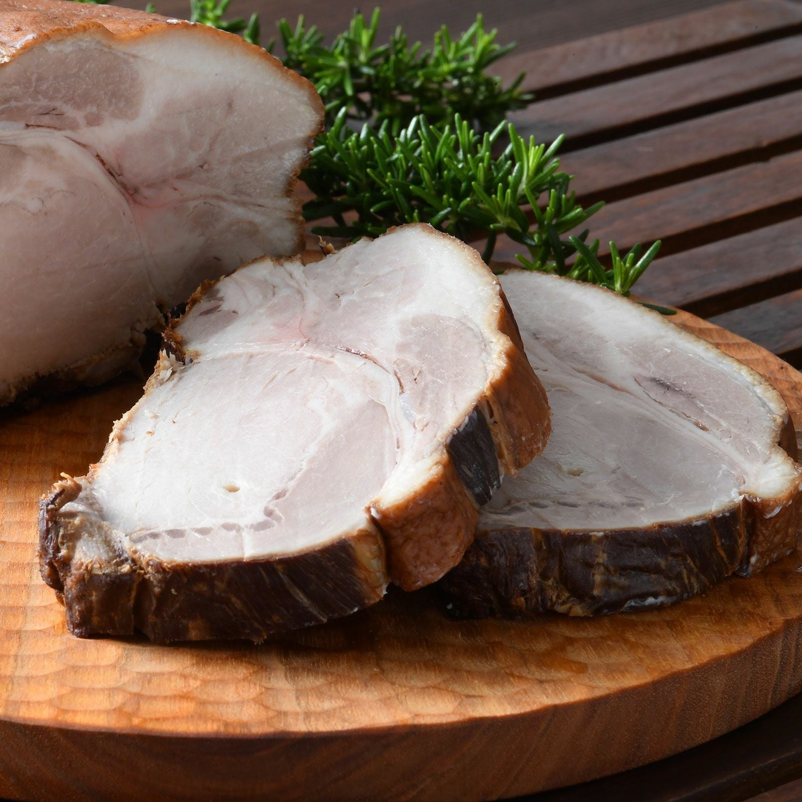 その後、じっくりと時間をかけて燻製・加熱。こうして完成した「熟成ロースハム」は、しっとりやわらかな食感と旨み、さらに脂身までも甘く感じられる味わいです。