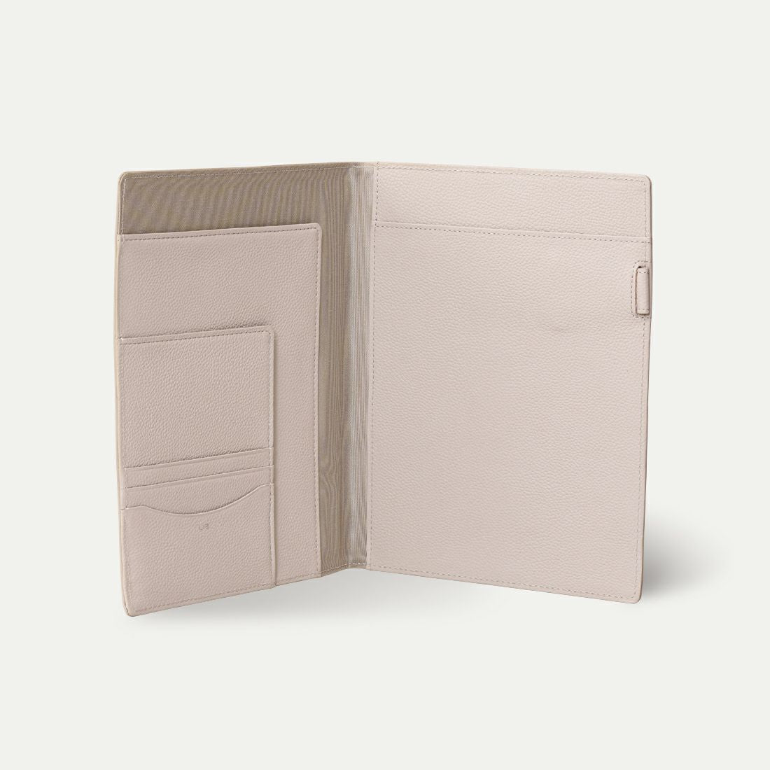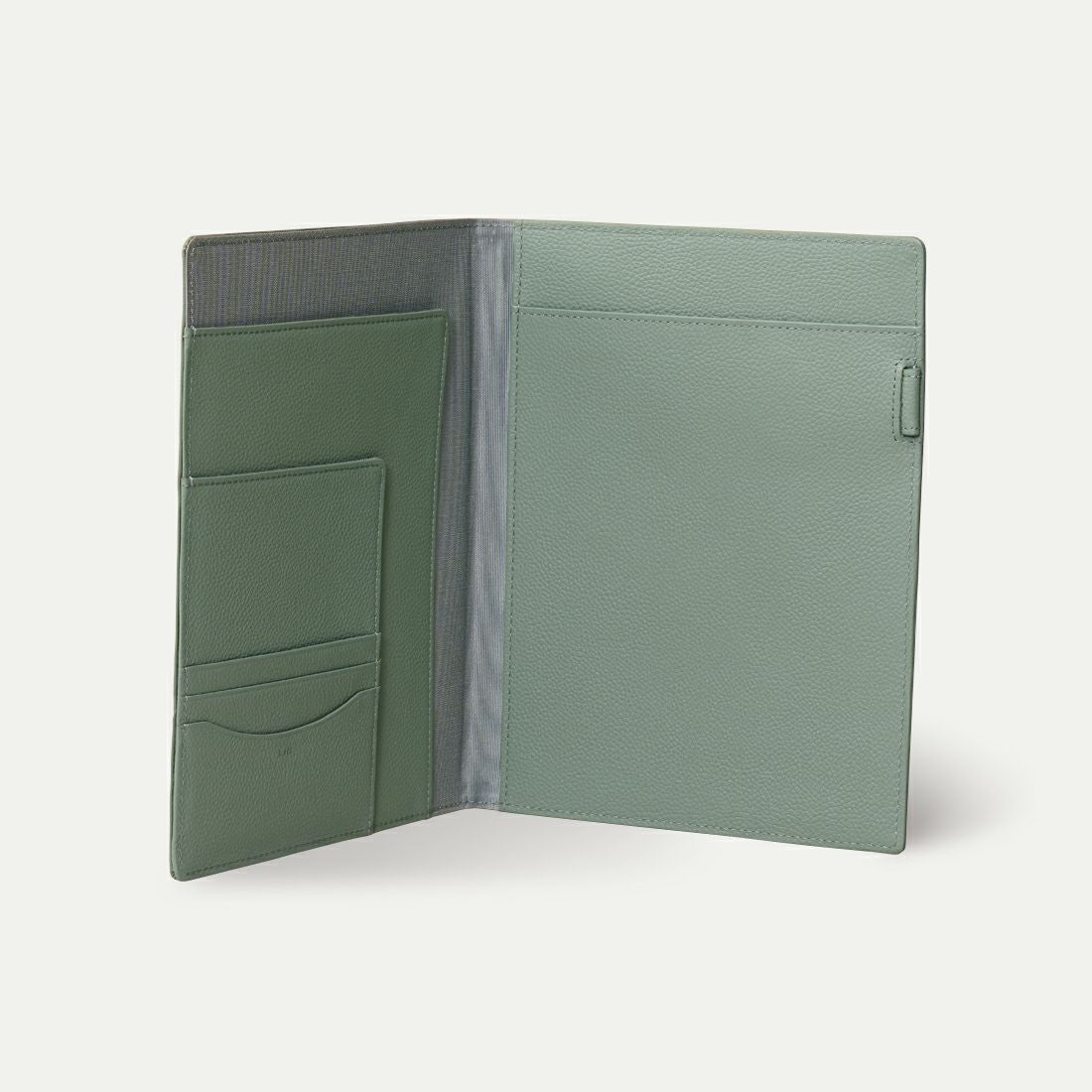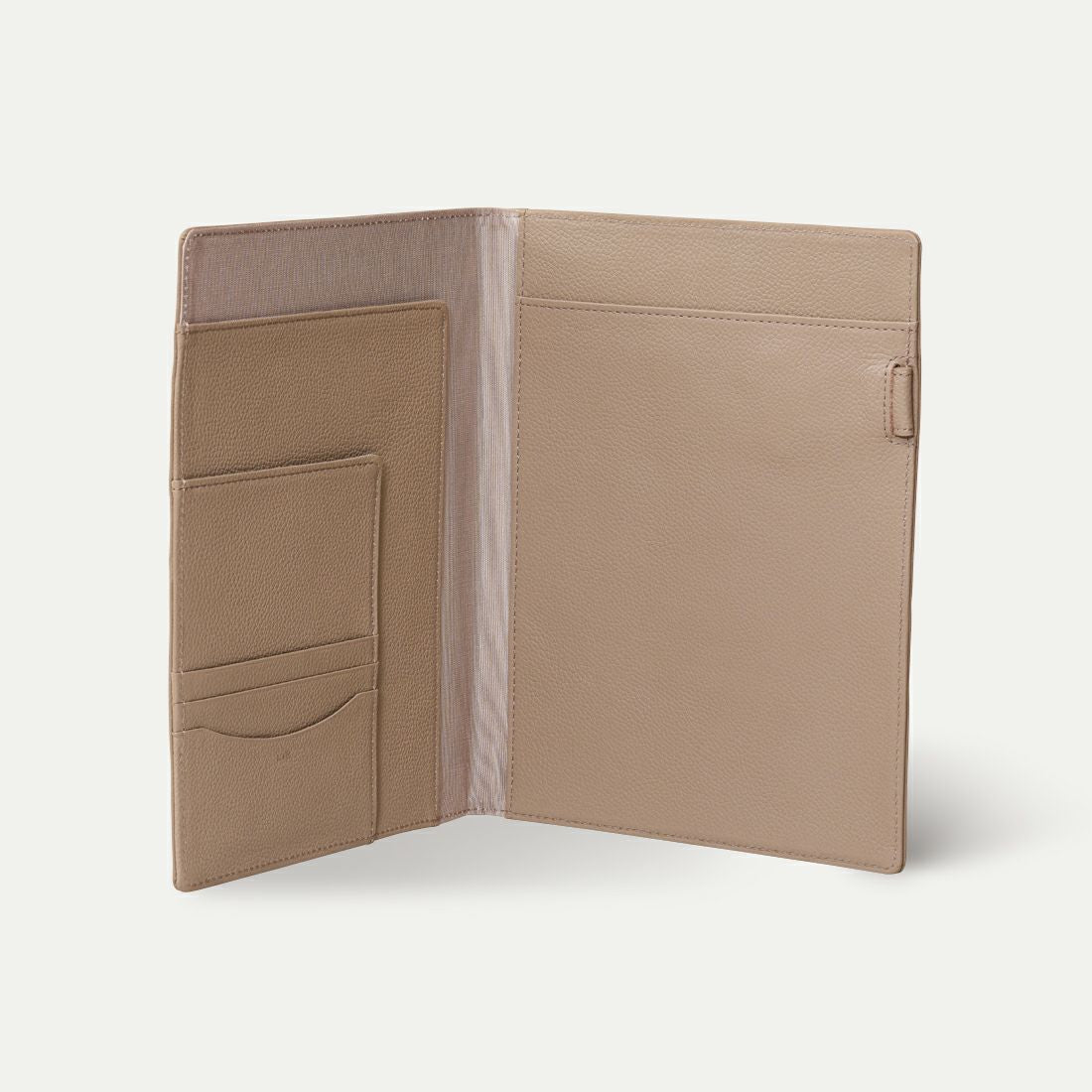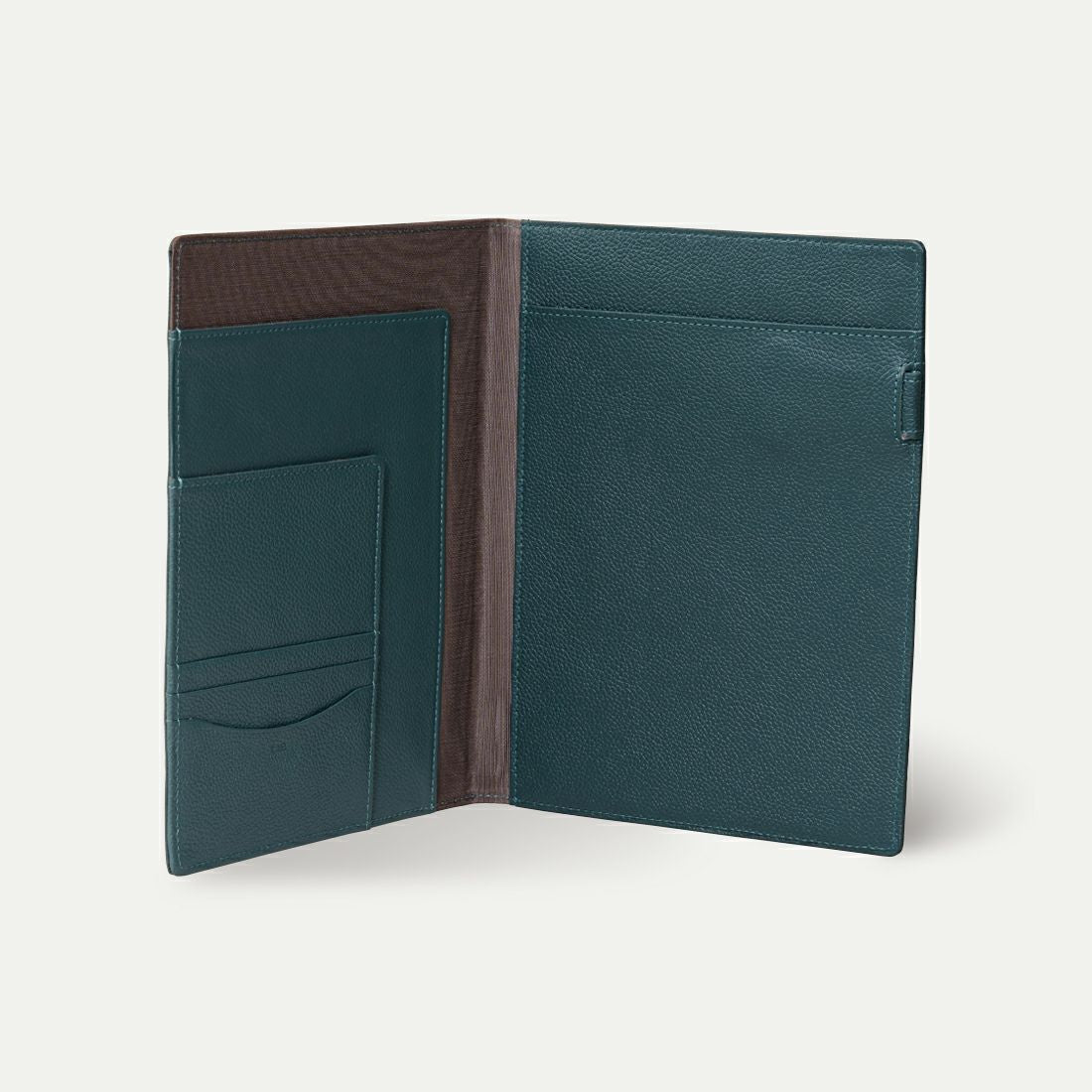 ロディアNo.16サイズに対応の本革メモカバー。カードや名刺を挟んでおけるカードポケット、切り取ったメモを挟むジョッターを用意しています。
