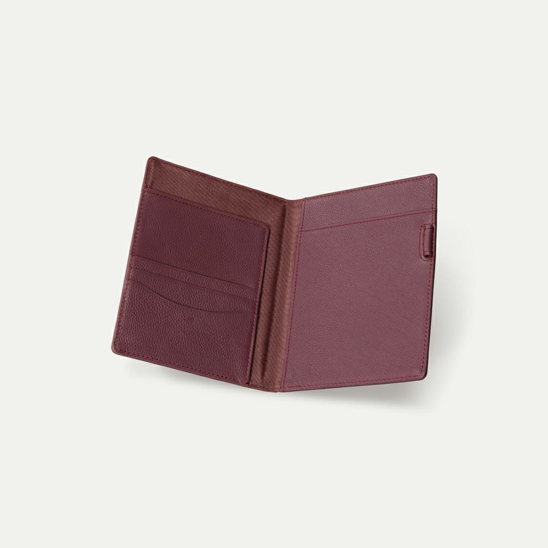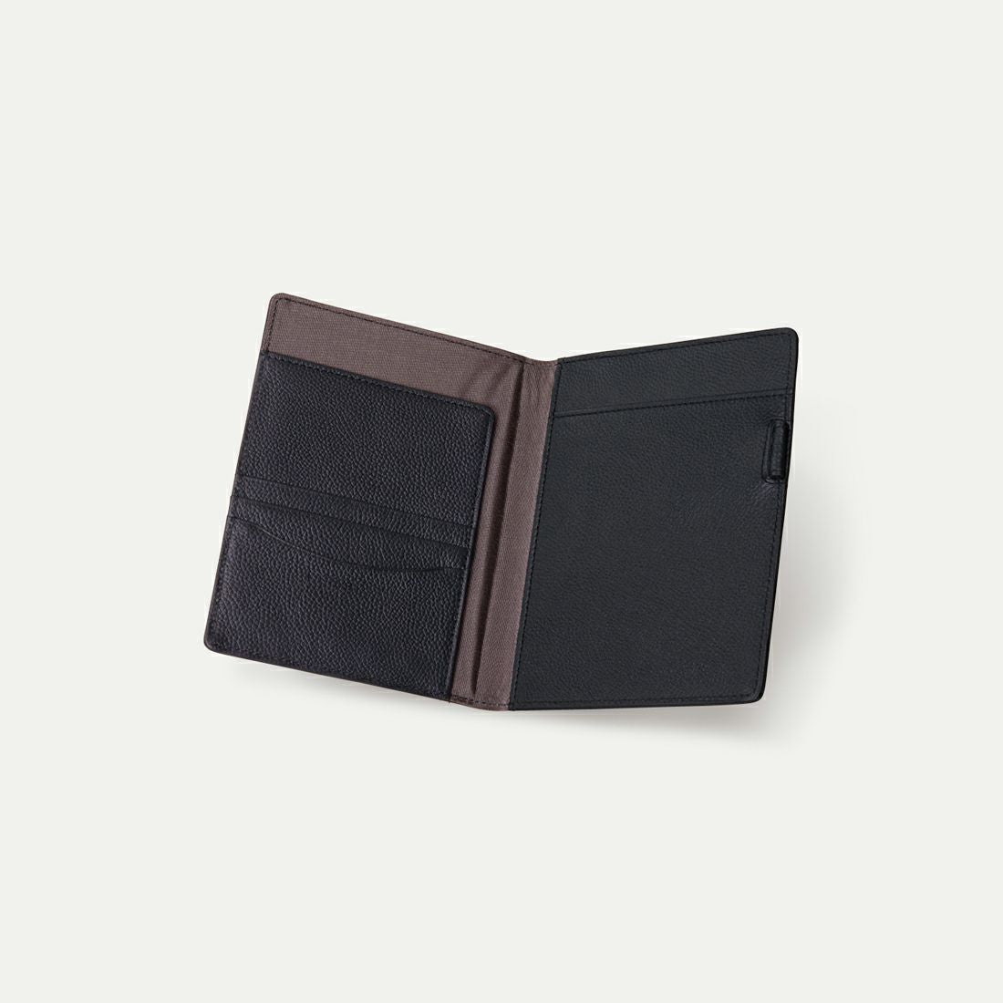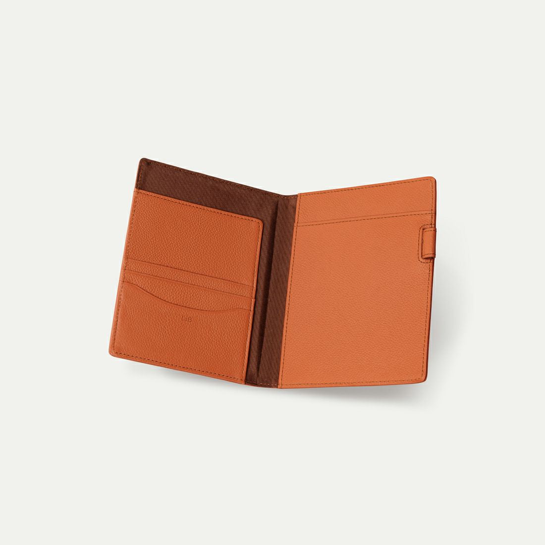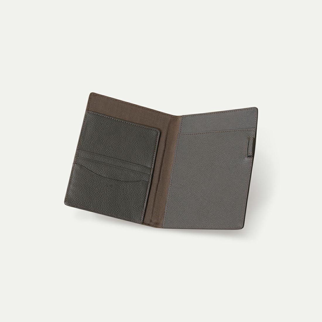 ロディアNo.13サイズに対応の本革メモカバー。カードや名刺を挟んでおけるカードポケット、切り取ったメモを挟むジョッターを用意しています。