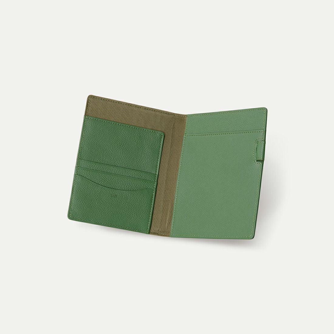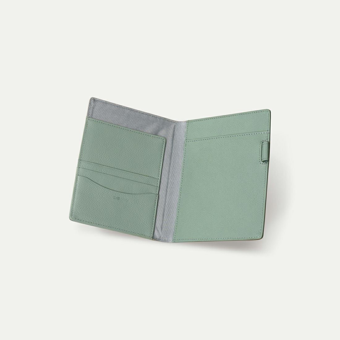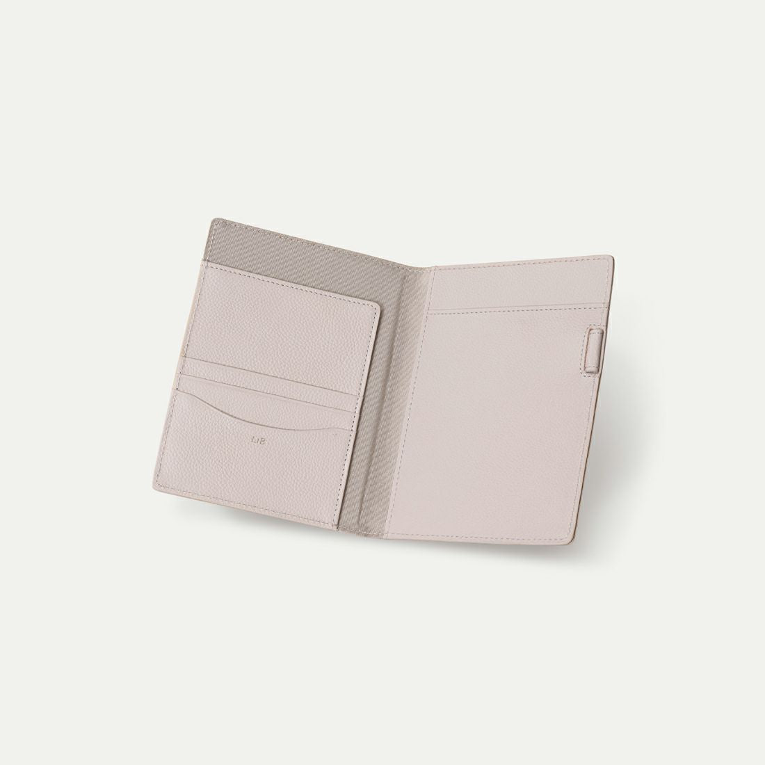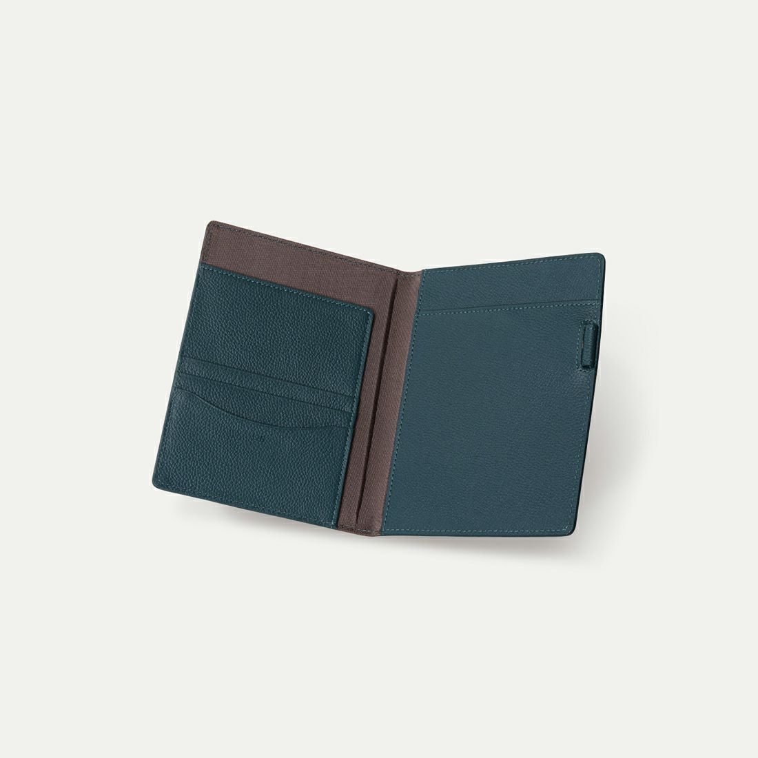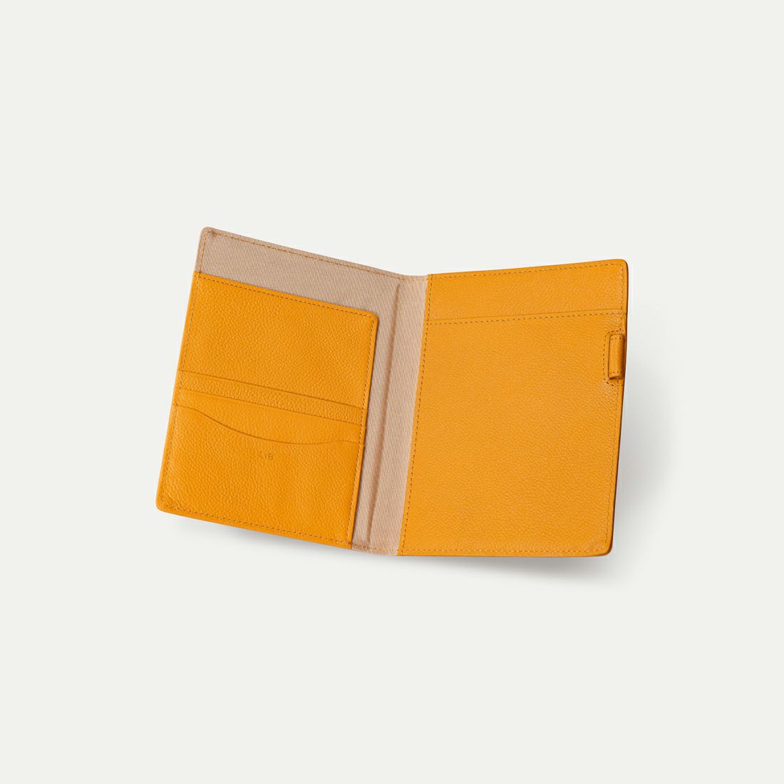 ロディアNo.13サイズに対応の本革メモカバー。カードや名刺を挟んでおけるカードポケット、切り取ったメモを挟むジョッターを用意しています。