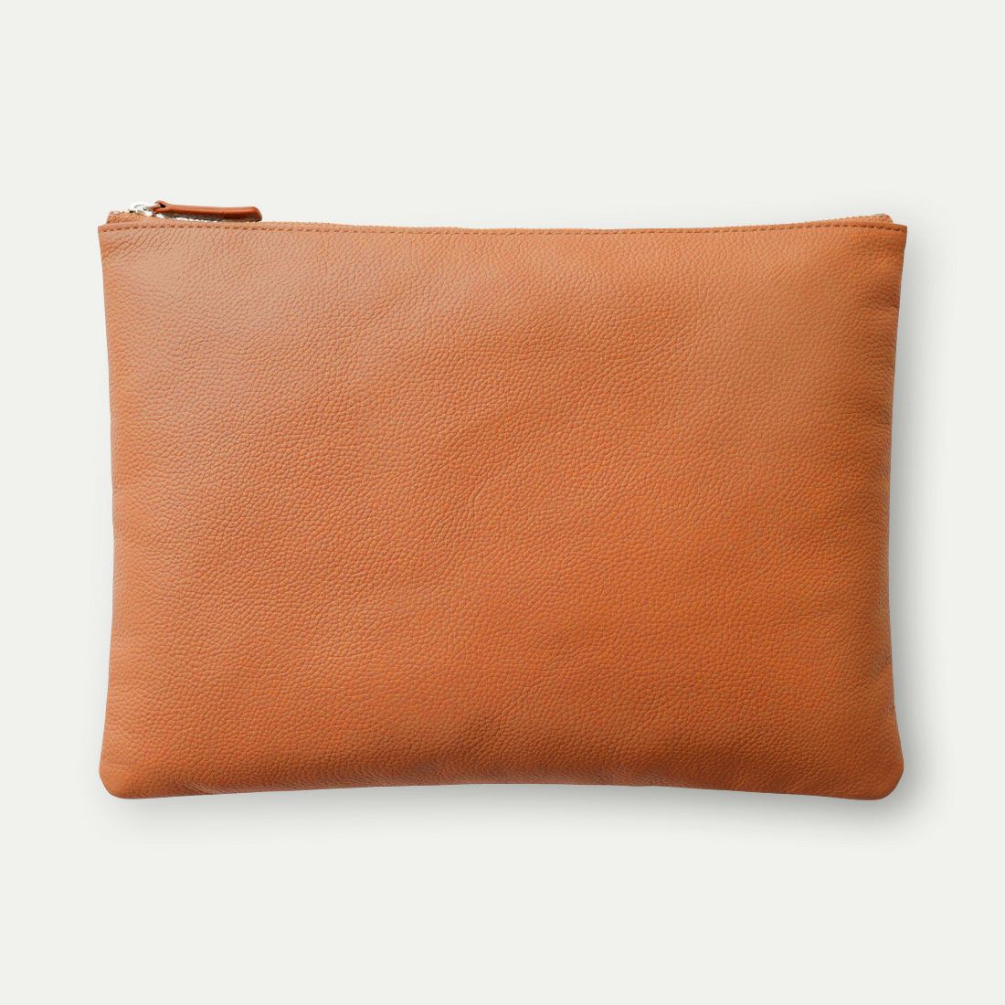 バッグインバッグとしても使える、Lサイズの本革ポーチ。A5サイズまでのノート等の文房具、モバイル周辺機器など小物がたっぷり入ります。
