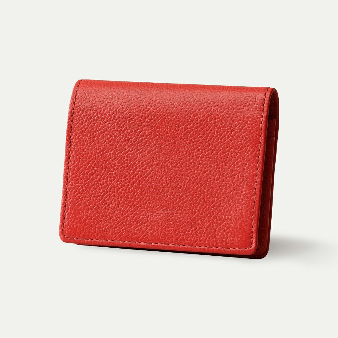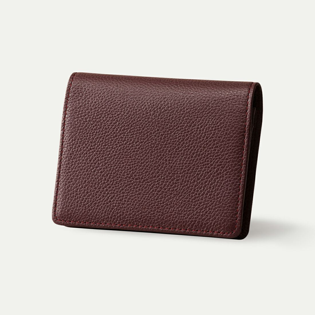 名刺を約100枚まで収納できる通しマチ名刺入れ。独自のマチ構造により、名刺を入れていない時もスリムに折りたたみます。名刺交換に必要な枚数を十分収納できるサイズながら、すっきりとした見た目が特徴です。全国19店舗の実店舗では、お名前やイニシャルの刻印、さらには写真刻印のサービスもご利用いただけます。特別な一品を、あなただけのカスタマイズで。