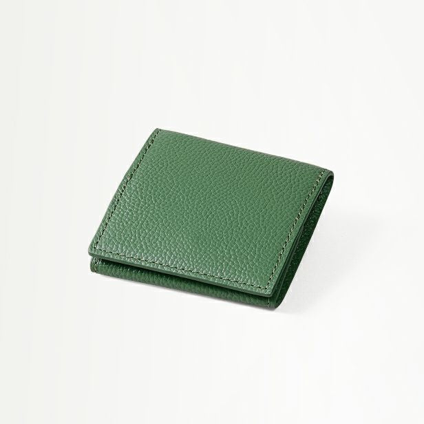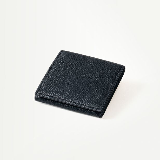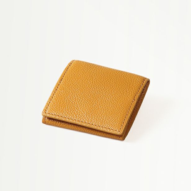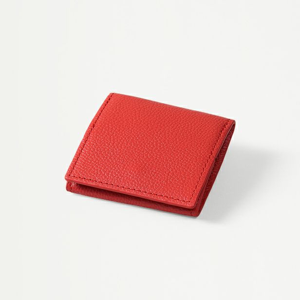 大きくひらいて、一目で中身が見渡せる本革のボックスコインケース。500円玉2枚、100円玉10枚の2000円分の小銭も収まるほど収納力があります。