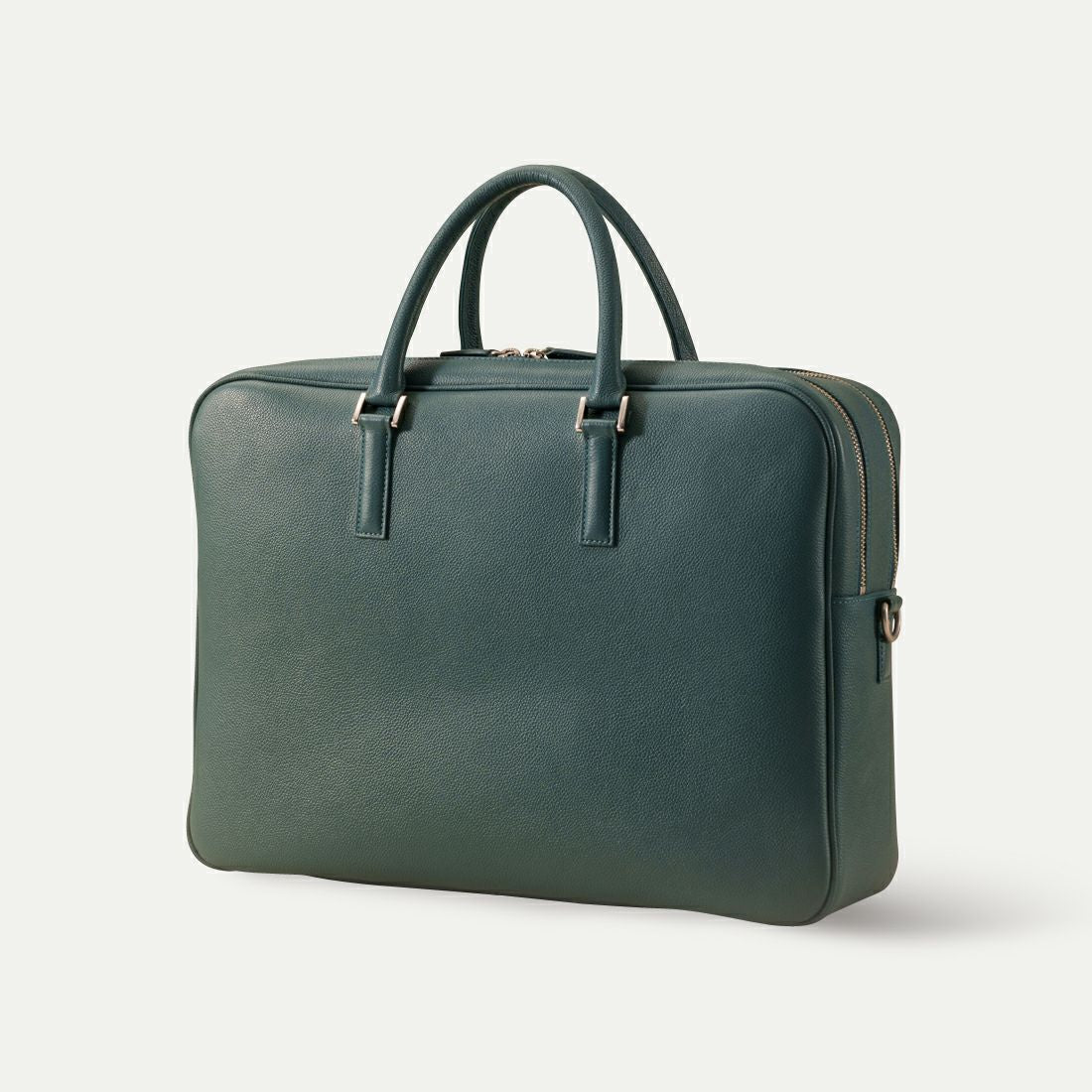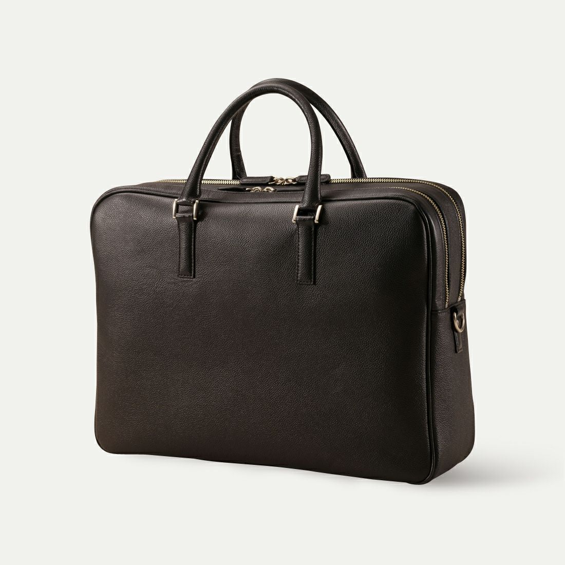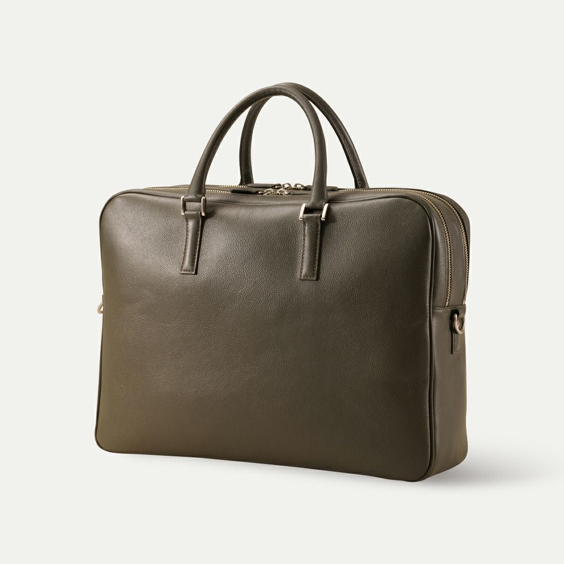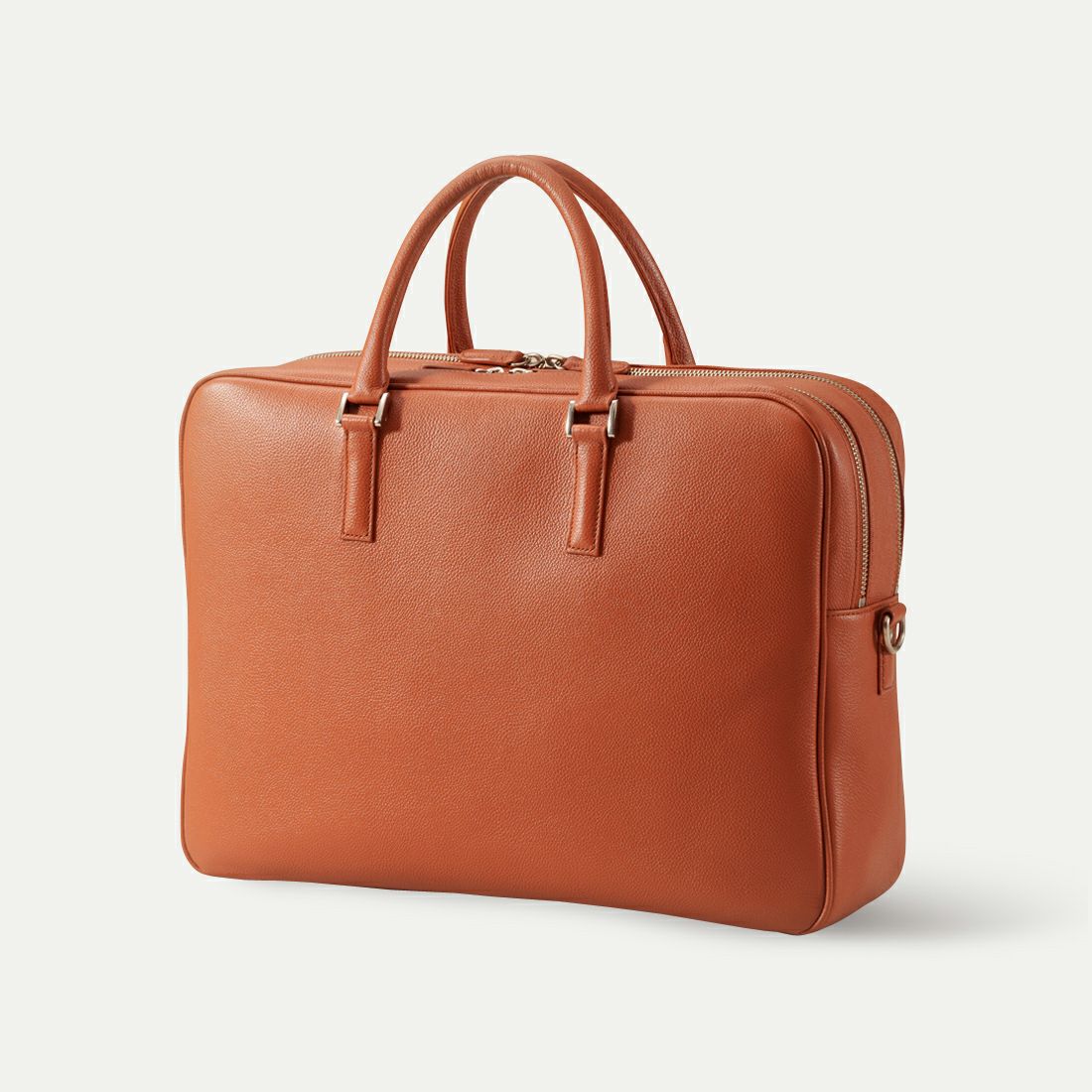 大容量でも形の美しさにこだわったシルエット。メイン収納は大きな2気質タイプになっています。商談用の書類やパソコンと出張用の着替え、お弁当などを分けて収納可能です。15インチまでのノートPCも収納できる大きさです。