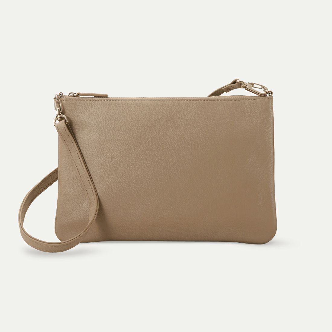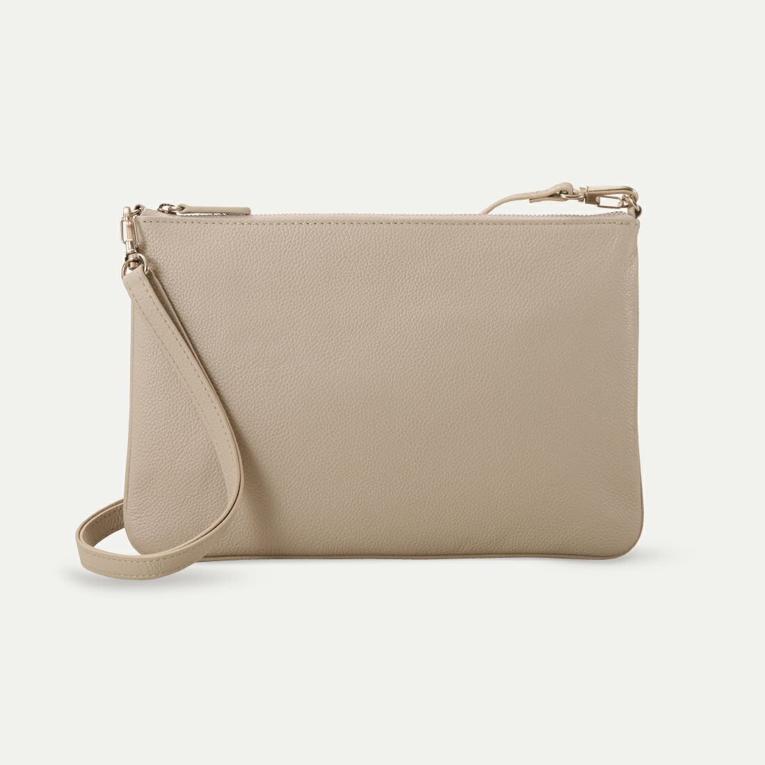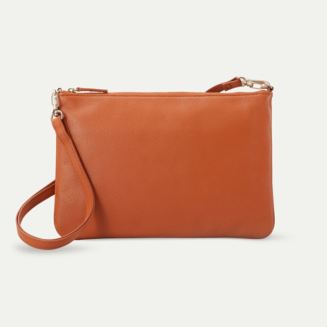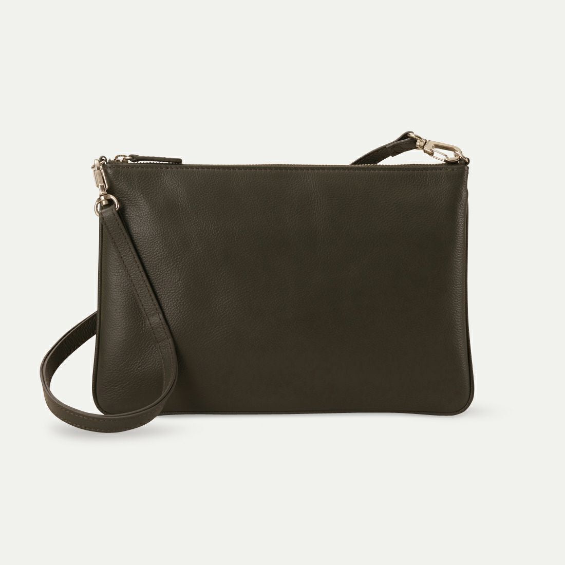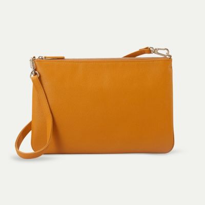 フォーマルにもカジュアルにも使えるバッグ。マチなしの構造で、中身に応じて厚みが変わるため、荷物が少ない時はすっきりとしたフォルムに。柔らかい作りで体に馴染みやすく、フィット感も抜群です。