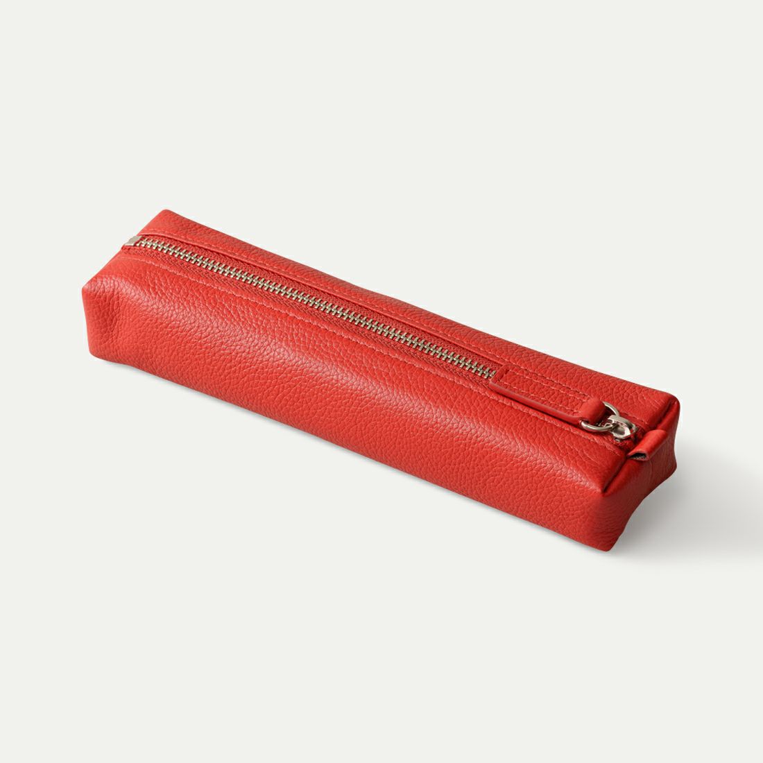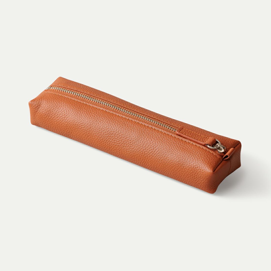 柔らかく手に馴染む、丸みのある優しいフォルムのペンケース。コンパクトな見た目以上に、収納力は抜群。 5〜6本程度のペン、消しゴム、定規等、日常使いに必要なものがしっかり入るサイズです。