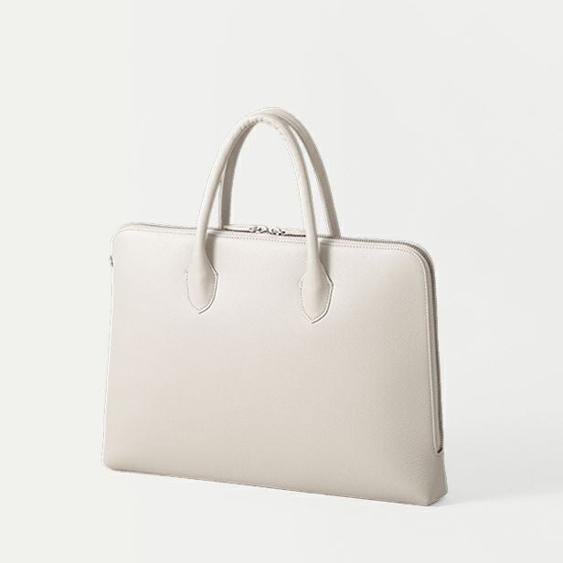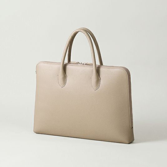 PCまわりの必需品を、スマートにひとまとめ。13.6インチまでのノートPCがぴったり収まる薄マチ設計。スリムながら自立し、内外に配されたポケットでガジェットも整理しやすく、必要な物をすぐに取り出せます。金具を使わないハンドルやファスナーの開き方まで、細部に美しさと機能性を両立したこだわりのビジネスバッグです。ショルダーベルト(別売)を取り付ければ、より快適な移動スタイルにも対応します。