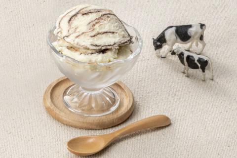 北海道産の乳製品を使用したバニラアイスに、チョコソースをマーブル状に混ぜ込んだホームタイプのアイスです。