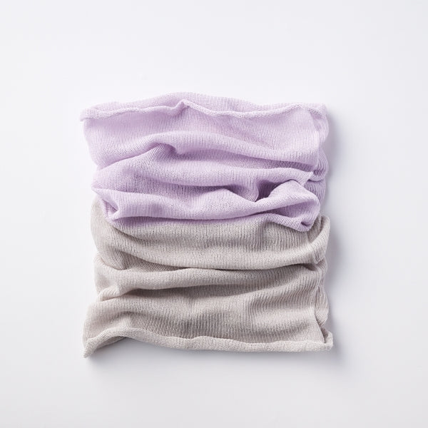 AKOMEYA TOKYO/ かぜまとう、ふんわりガーゼの綿麻ネックカバー パープル×ライトグレー