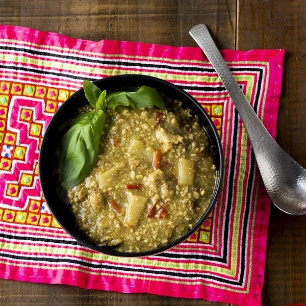 タイの定番料理・ガパオライスを、日本のお米に合うよう、北海道産昆布の出汁に山椒、梅昆布茶、魚醤などの調味料を使用し、五島産の有機レモングラスですっきりとした味わいに仕上げました。