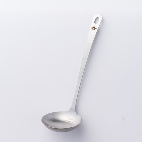 継ぎ目がない一体構造なので、お手入れが簡単で清潔に保つことができます。柄には穴が開いているので、フックにかけて保存することも可能。アコメヤのシンボルマークがワンポイントになっています。