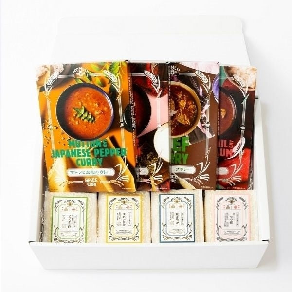 スパイスの効いた本格カレーから和の食材を使った4種類のカレーと、カレーに合うお米をお店のスタッフがセレクトしました。