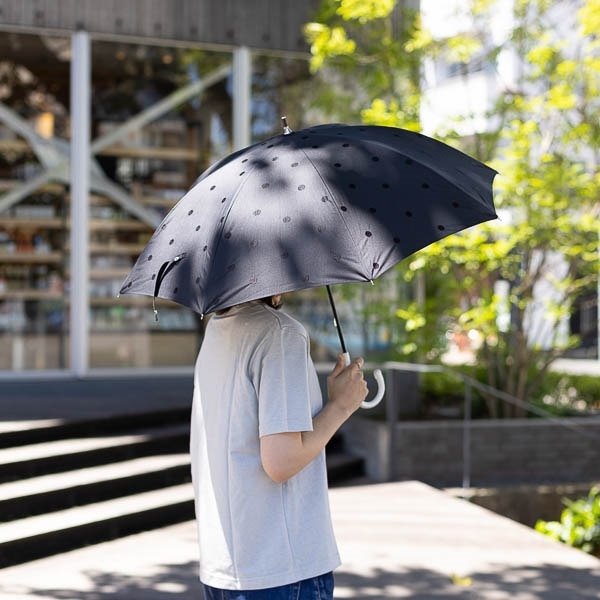 ドット刺繍の中にさりげなく一つだけAKOMEYAのシンボルである福良雀の刺繍を施したシンプルながらもおしゃれなデザインになっています。夏の日差しから肌を守るUVカット率95%以上の機能性と軽い雨にも対応できる防水加工でシーズン問わず活躍するアイテムです。