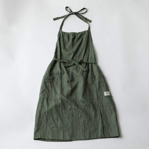 上質なフレンチリネンで作った発色の美しいエプロン。リネン素材ならではの風合いは、使いこみ、洗いを繰り返すうちに味わいが増します。使い方は、紐を背中でクロスして腰元のボタンに留める方法と、ホルターネックにして首元で結ぶ2通り。気分によって着方を変えられるので、日々のお料理の時間がより一層楽しい時間に。