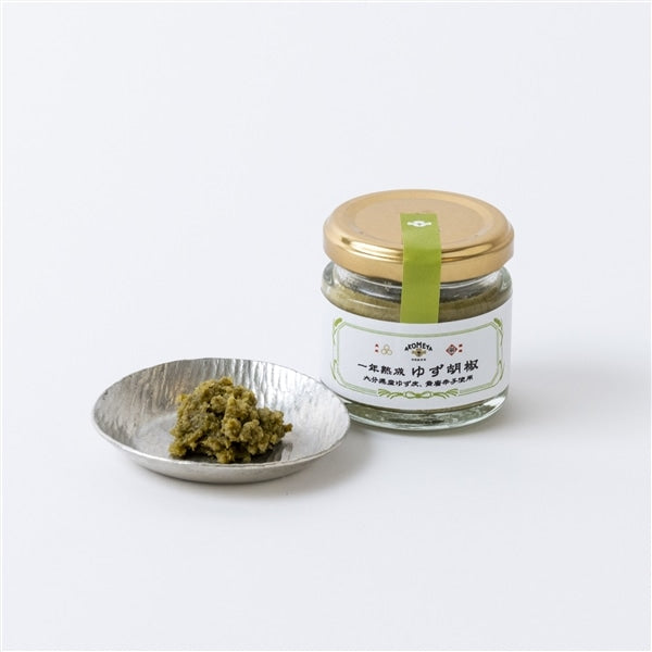 1年熟成ゆず胡椒は、厳選した材料を用い、秘伝の製法を頑なに守り「味・香り」を大切に1年以上熟成したもので正に「味・香り」共に他の追随を許さぬ逸品です。