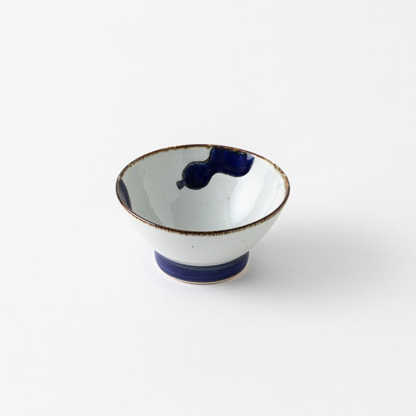 AKOMEYAオリジナルのくらわんかの茶碗は伝統的なくらわんか茶碗の形状を参考に、土の色合い・渕の錆釉風合い・絵柄と細部に拘った飯碗になっています。また絵柄も熟練の職人が一つ一つ手で描いたものです。 描かれた絵柄は末広がりの形をしたひょうたんで、古来よりとても縁起の良いものとされ、除災招福のお守りや魔除けとして広く用いられてきました。3つ揃えば三拍(瓢)子揃って縁起がよいと言われています。