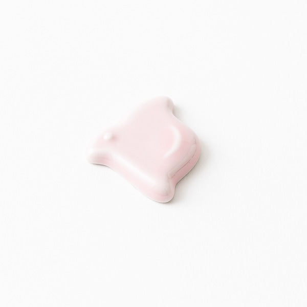 寛右衛門窯は、江戸時代より今なお鍋島藩窯の伝統技術を受け継ぎ「秘窯の里」と呼ばれている佐賀県伊万里市大川内山にあります。造形を担当した瀬戸口さん曰く、こちらの箸置きは「どこかユーモアがあって可愛い、それでいて伝統の吉祥紋を表現したものに仕上げました」とのこと。優しい色目も食卓になじむ箸置です。