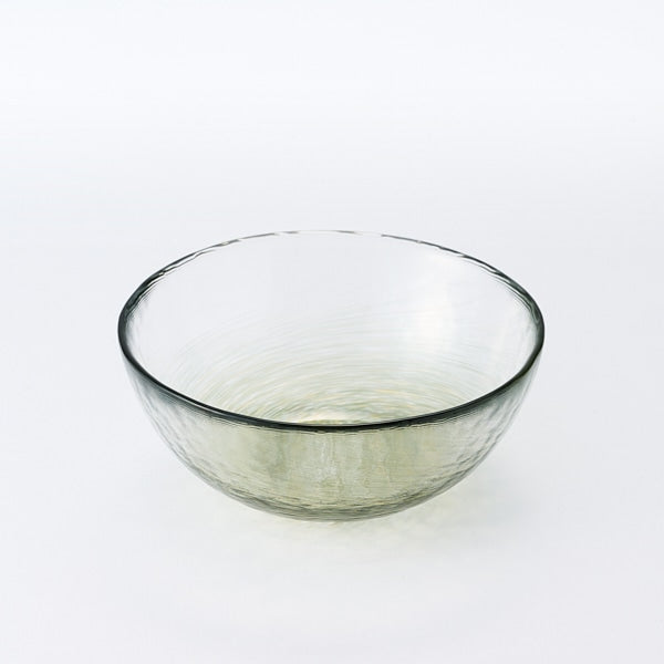 アコメヤ限定の、和食に合う落ち着いたカラーに色出ししたガラスは、小ぶりで程よい深さがあり汁物や副菜などを盛り付けるのに最適。普段のお食事や、晩酌のお供に。