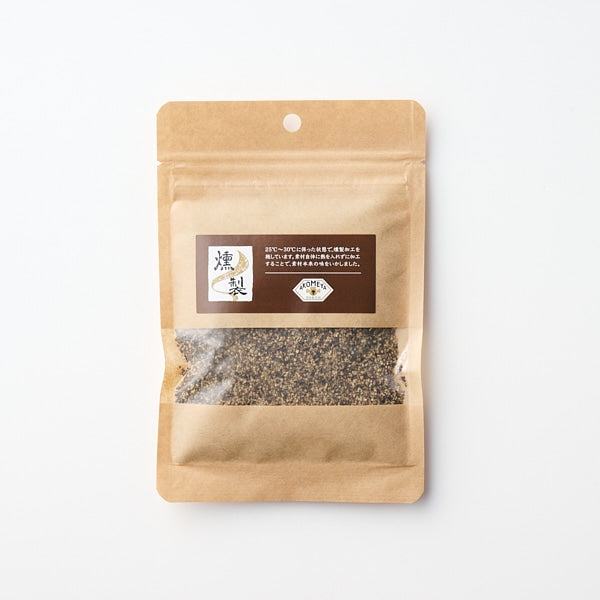 粗挽きのブラックペッパーをヒッコリーのチップで燻製加工しております。
