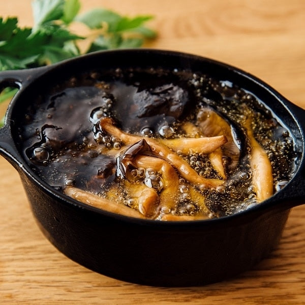 大分県産の椎茸と、国産のにんにくを使用したアヒージョ。オリーブオイルとにんにく、唐辛子でコク深い味わいに仕上げました。パスタやバゲットに合わせてもお楽しみいただけます。